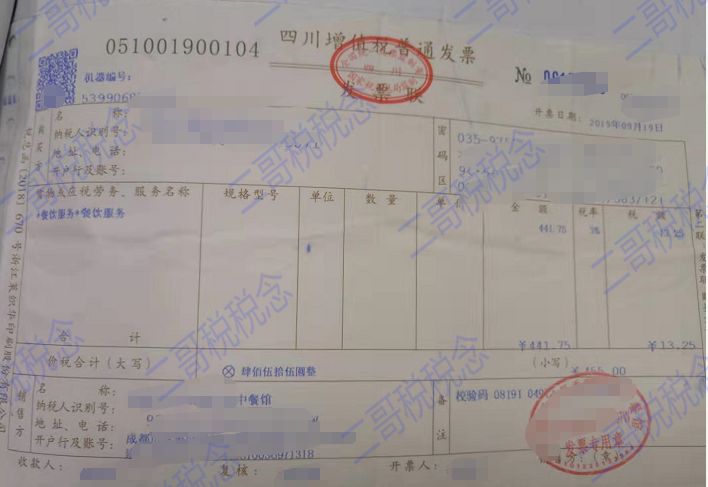 增值稅專用發(fā)票的餐飲服務(極少見)