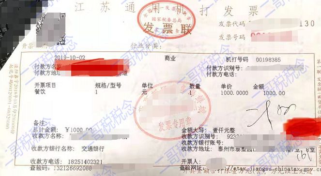 通用機打的餐飲發(fā)票